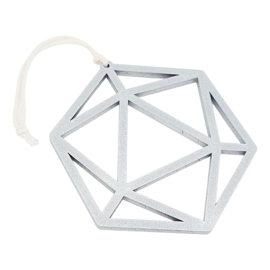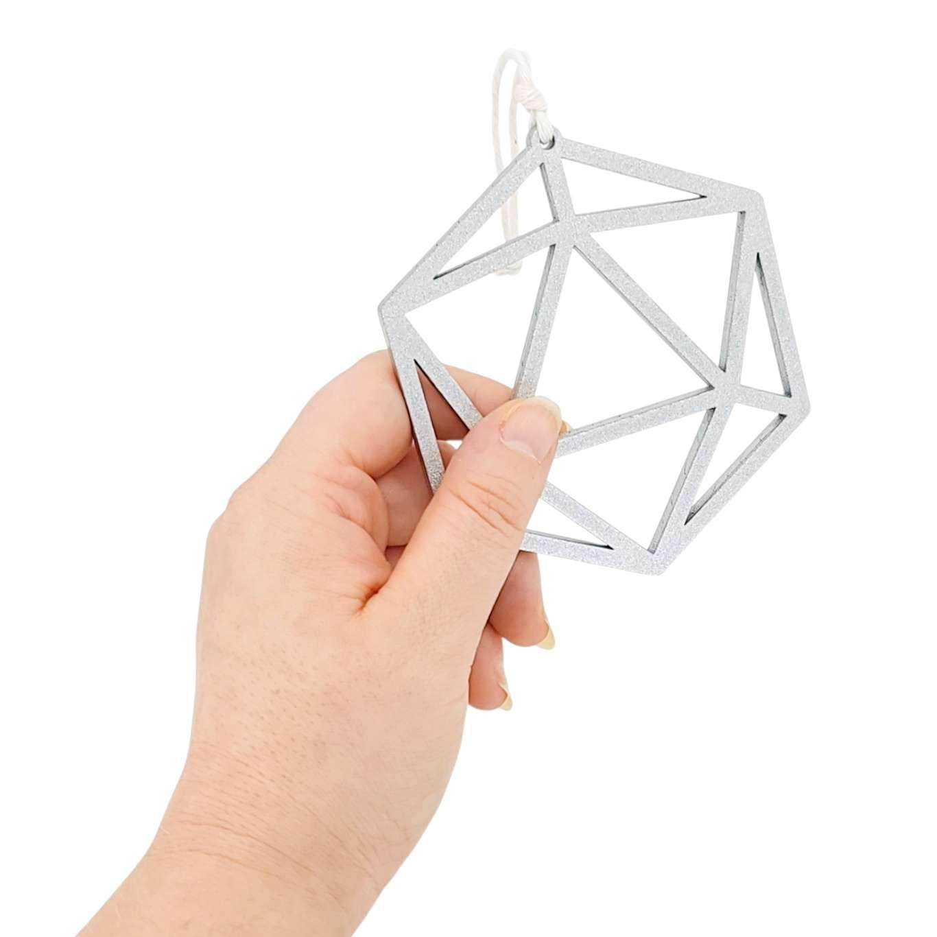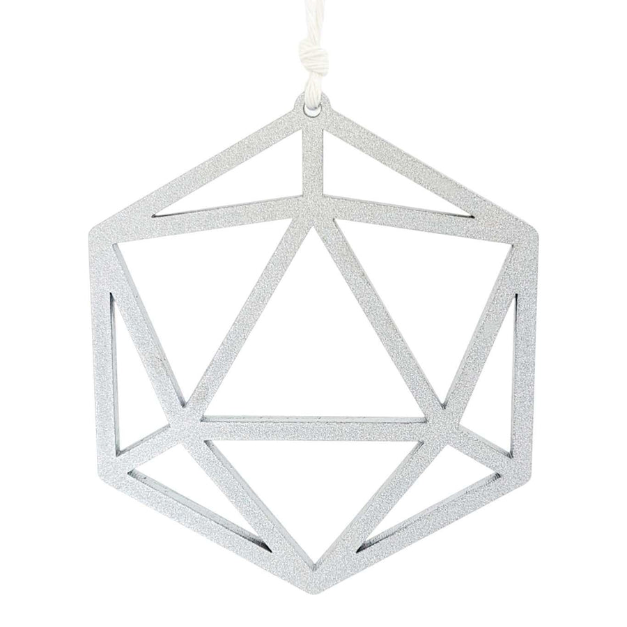 A precisely carved D20 ornament laser-cut out of maple wood - ideal for tabletop gamers and geometry lovers alike.