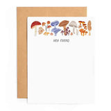 Start or add to your stationery collection with this brightly colored boxed set of 20 flat note cards and 20 envelopes featuring mushrooms, flowers, and few forest friends.