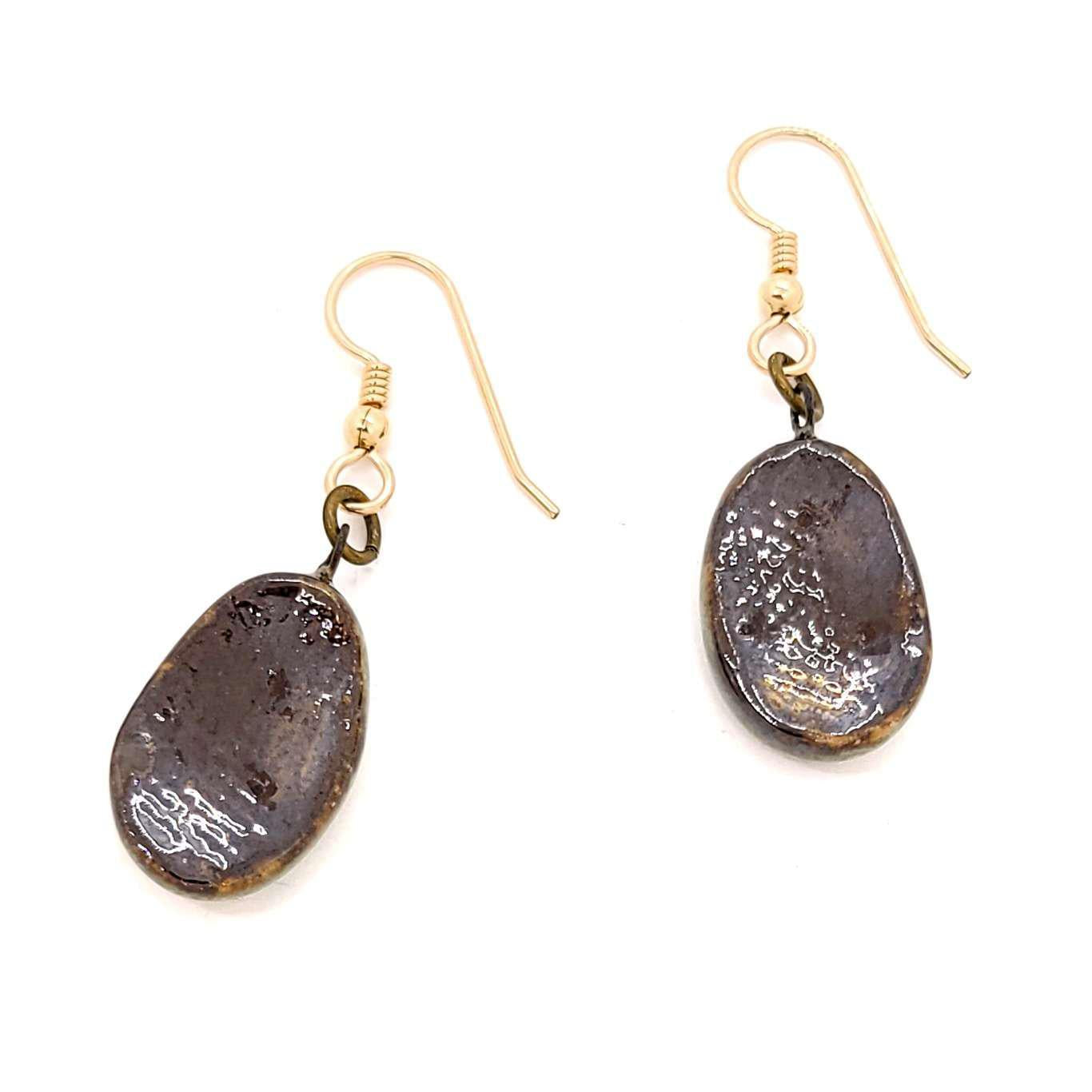 Earrings – Sterling Silver Trilobite Drops with Bronze Shell by Una Barrett