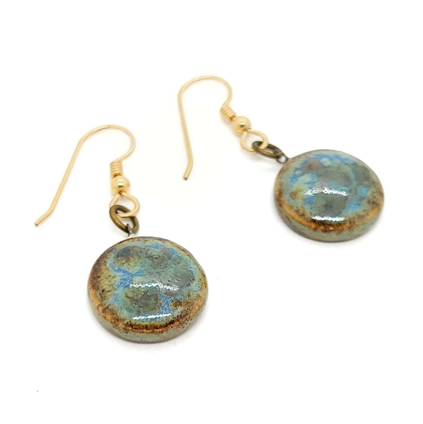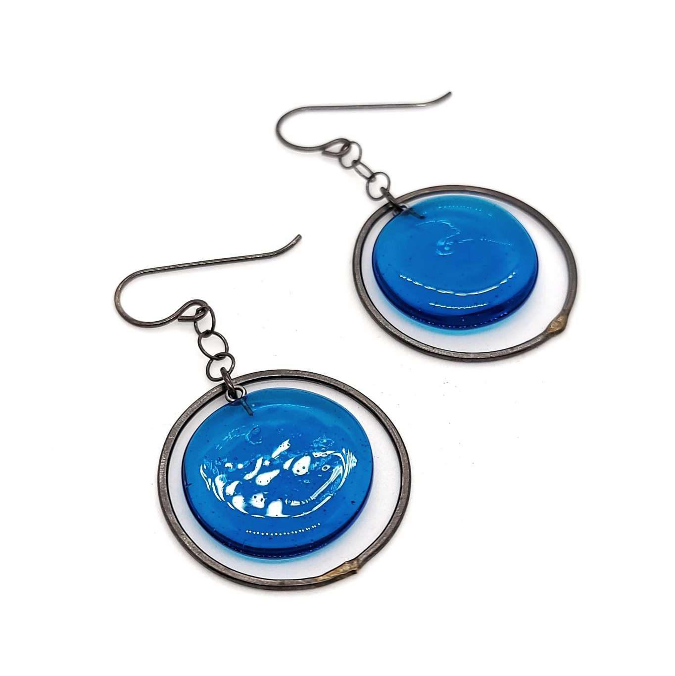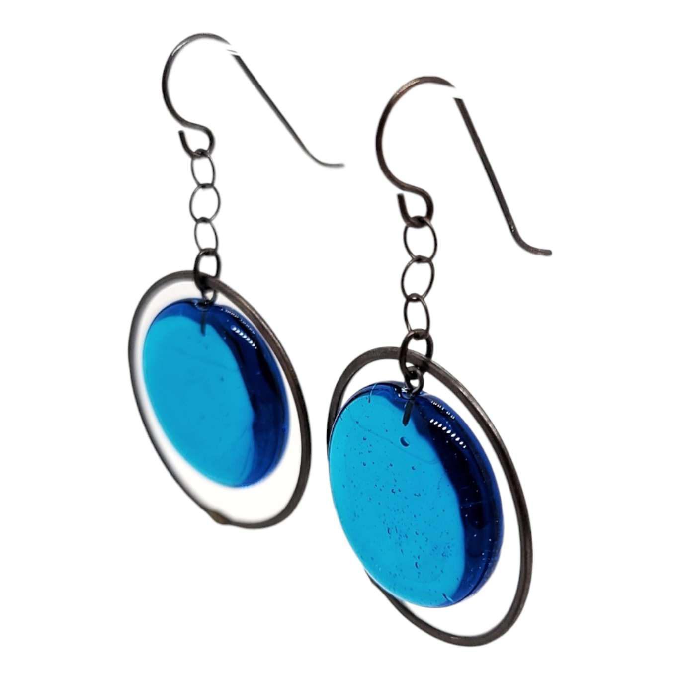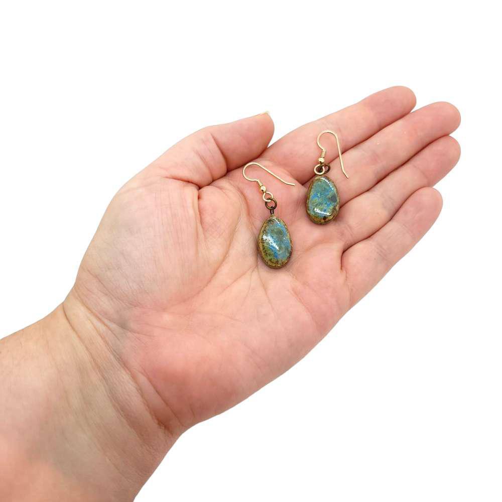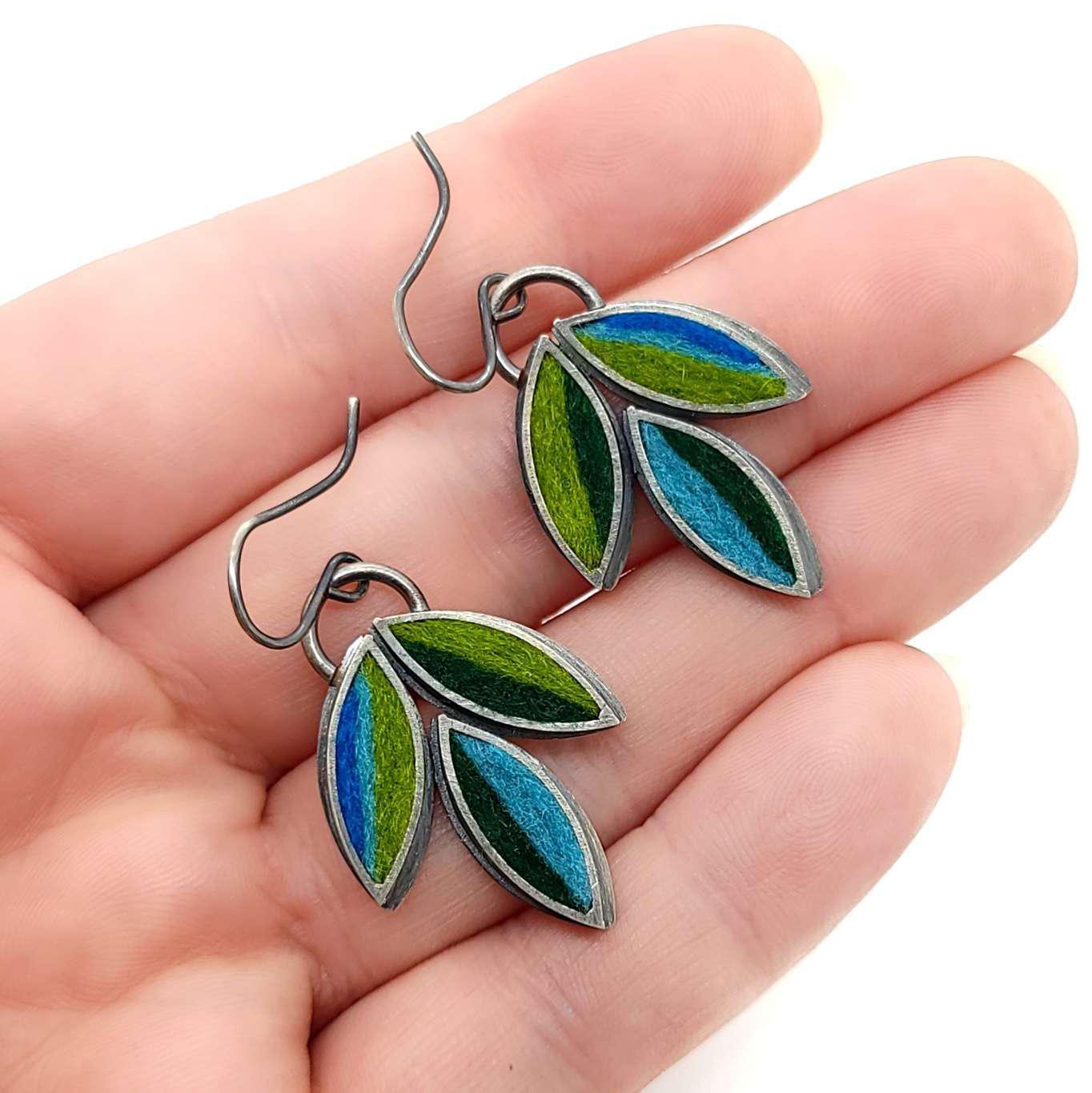 Earrings - Small Single Leaf Drops (Blue Green) by Michele A. Friedman