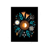 Illustrated folk-style flowers and leaves on a black background makes this card suitable for any and all occasions!
