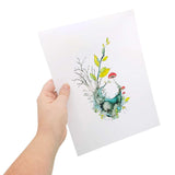 Print of an original mixed media drawing. Printed on heavyweight archival matte paper with archival inks. The image is centered on the paper with a white border for framing.