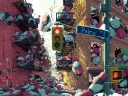 Choose your favorite section of the Panda Brawl at the corner of Paine Lane and Pounding Street or select all four to create a full 360 degree image!