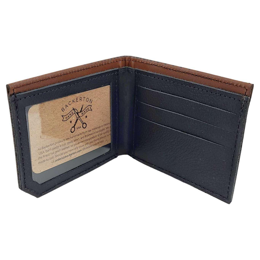 Backerton uses a proprietary printing process that bonds the image to the leather which prevents fading, chipping, or cracking as the wallet is worn in.