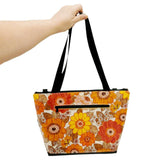 LT704 $230 - Orange Retro Flowers on Linen - Convertible Travel Tote Bag