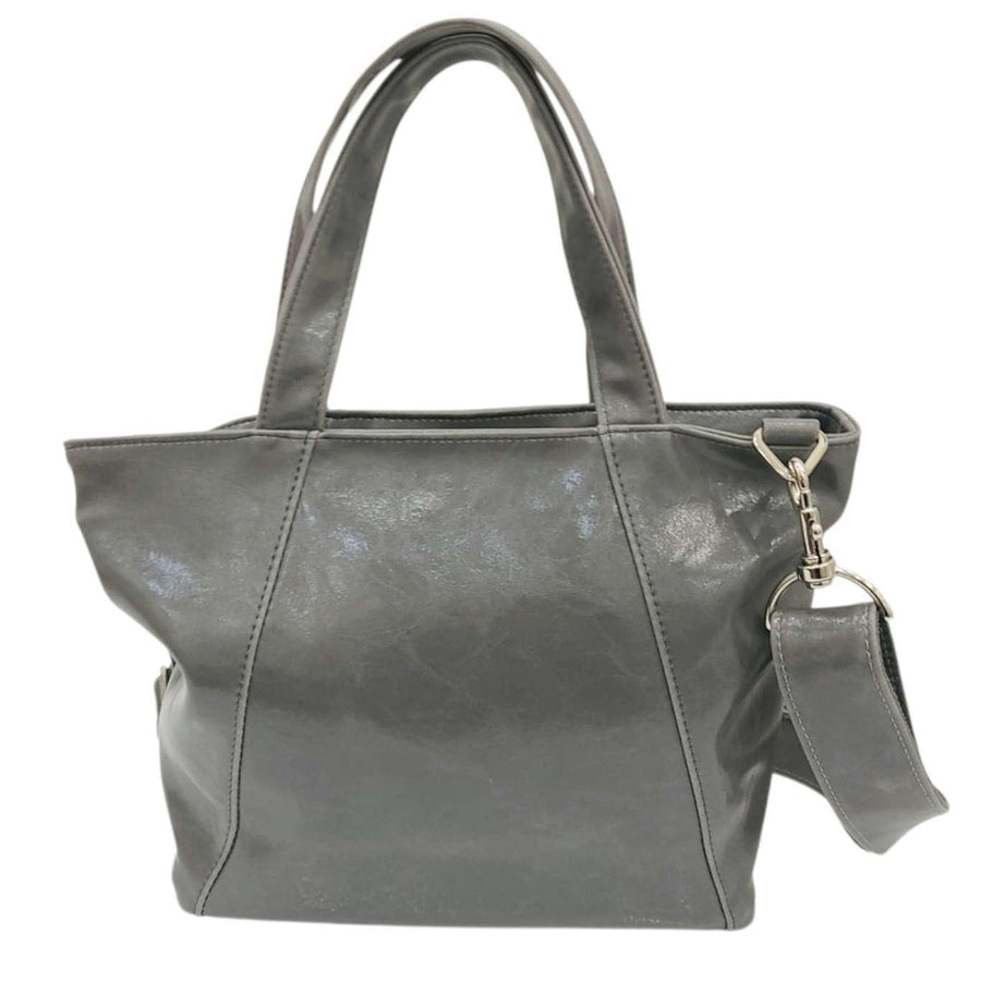 This stylish, versatile tote bag in soft gray is made of Crystalyn Kae's signature machine washable glazed canvas, features plenty of pockets and a soft fabric lining, and is easily convertible for hand, shoulder, or cross-body wear!