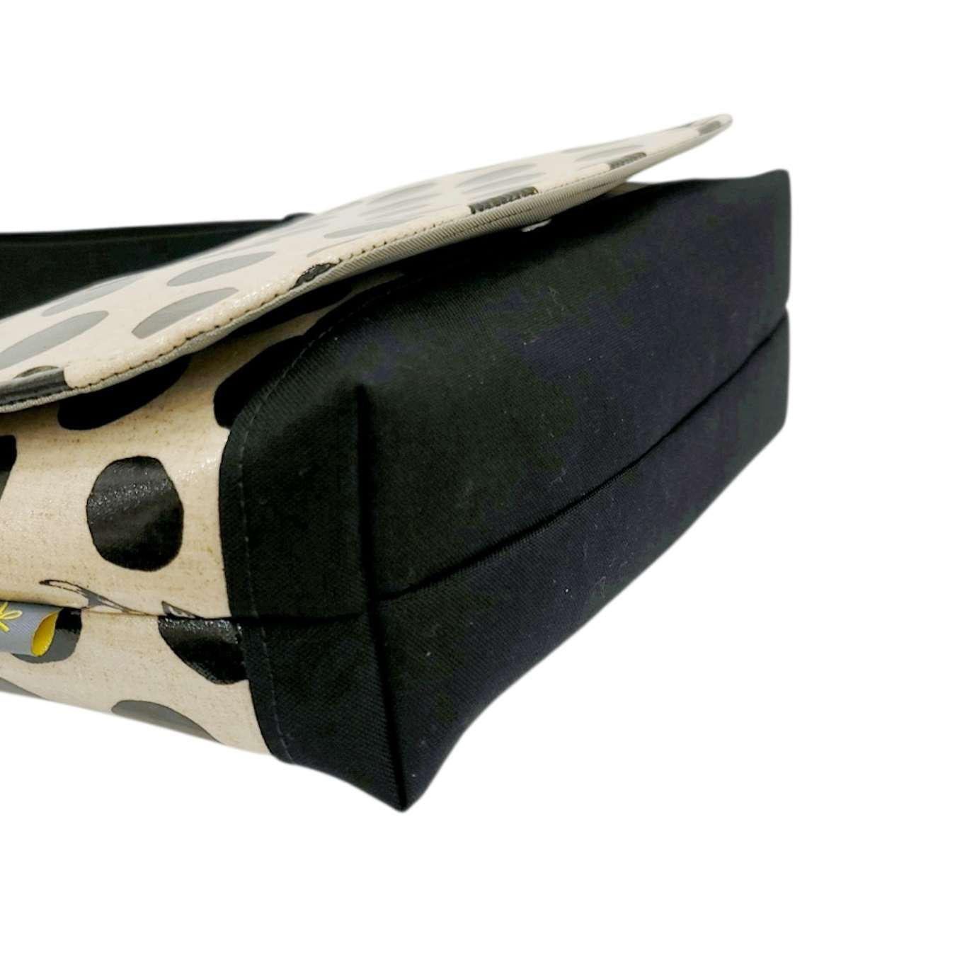 - Materials: Laminated canvas, nylon fabric, nylon webbing straps, plastic hardware, magnet closure