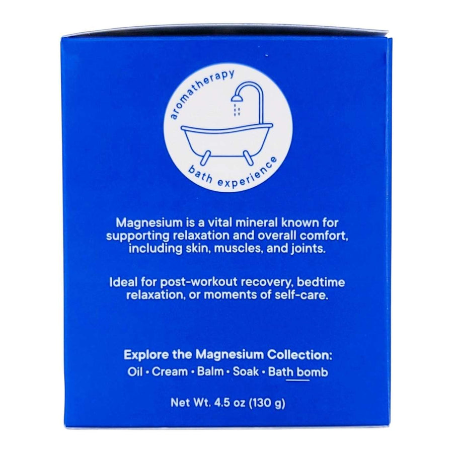 Luxurious magnesium bath bomb infused with pure magnesium chloride and calming lavender essential oil, designed to help ease muscle tension, support recovery, and promote restful sleep.