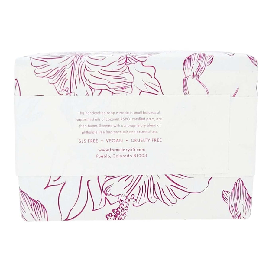 This handcrafted soap is made in small batches of saponifed oils of coconut, RSPO-certified palm, and shea butter. Scented with our own proprietary blend of phthalate free fragrance oils and essential oils. All of Formulary 55 products are made in the USA, vegan, certified cruelty-free, SLS-free, and paraben free