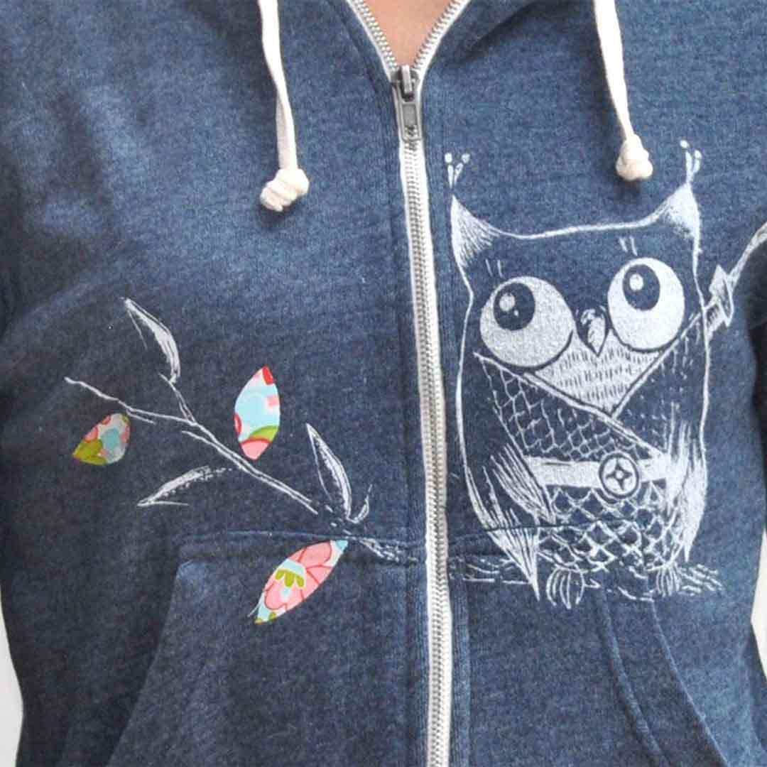 Super cute Ninja Owl hoodie with appliqued leaves in bright colors!