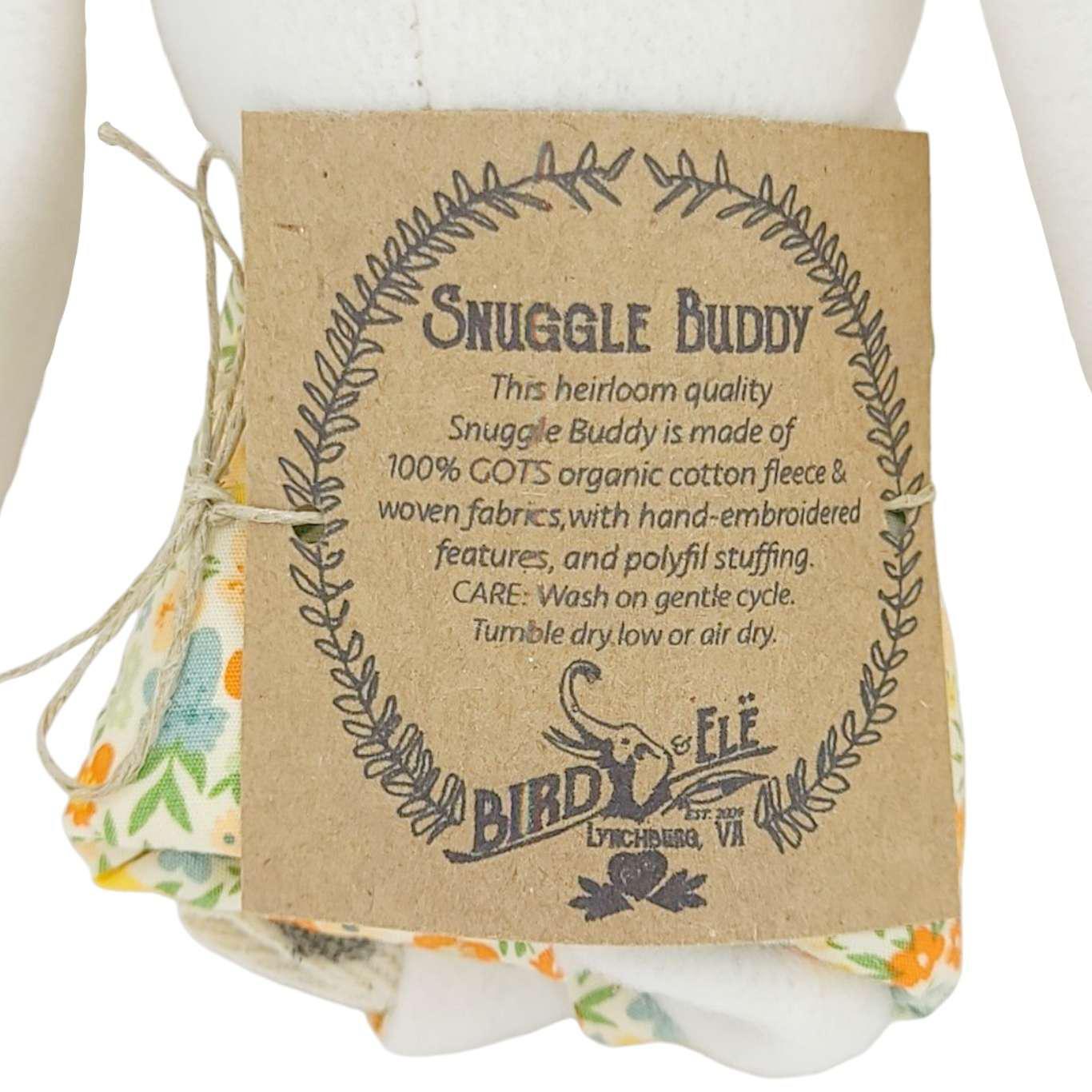 This sweet bunny lovey features soothing Floral Blush print fabric on the ears and back, with snuggly soft unbleached cotton on the rest of the body and embroidered noses and sleepy eyes.