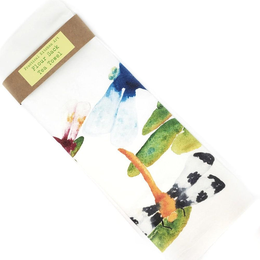 Original watercolor designs are screenprinted on 100% cotton flour sack cloth.
