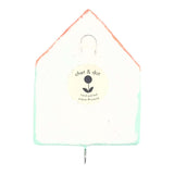 The sweetest way to store your keys! This friendly papier mâché house features a simple hook at the bottom and a loop in the back for hanging.