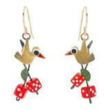 - Materials: Antiqued brass, 14k gold fill, enamel paint, plastic dice