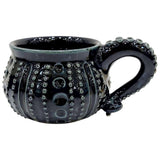 - Ceramic mug with tentacle handle and sea urchin-inspired body texture