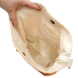 - Materials: Cotton/linen blend fabric, waxed canvas, cotton strap, antique brass hardware