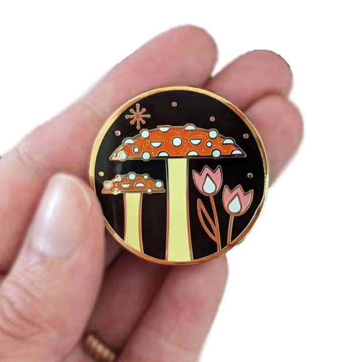 Enamel Pin - Mushrooms and Flowers by Amber Leaders Designs
