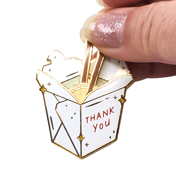 What tasty morsel is hiding in this to-go box? Lift the chopsticks and take a look for yourself! This moving interactive pin is the perfect novelty gift for the foodies, Asian food lovers, or dim sum lovers in your life.