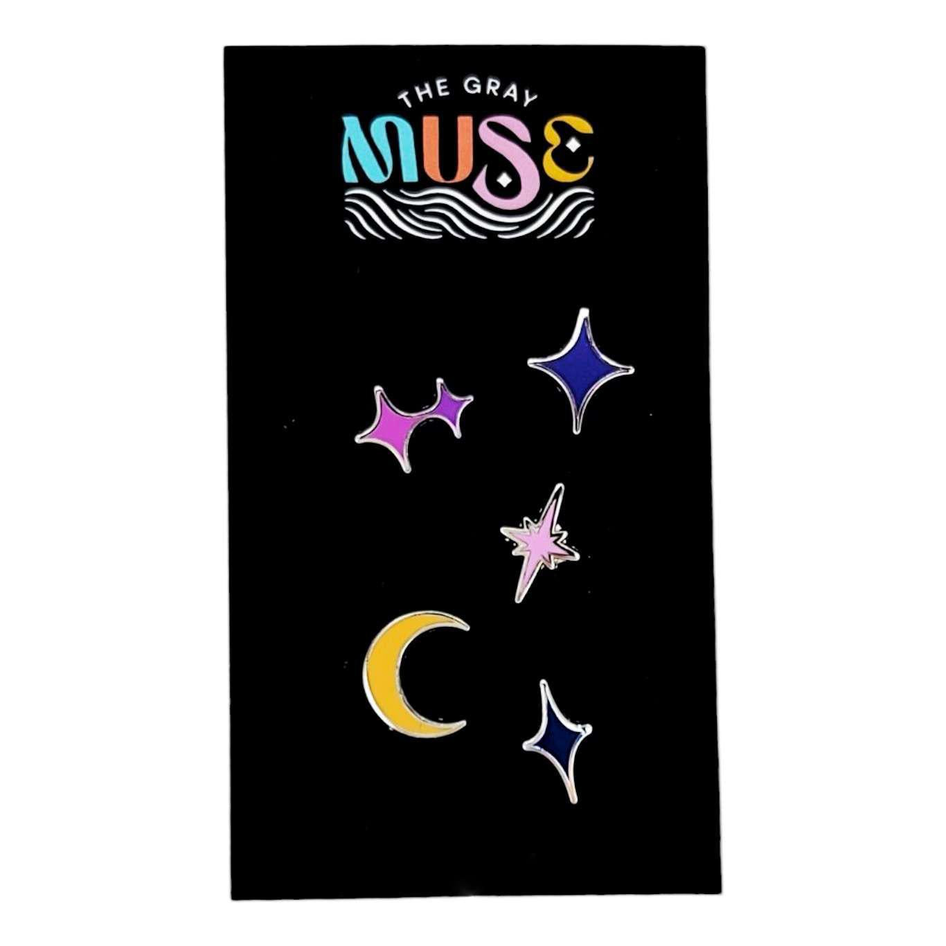 Enamel Pin - Mini Stars and Moon (set of 5) by The Gray Muse