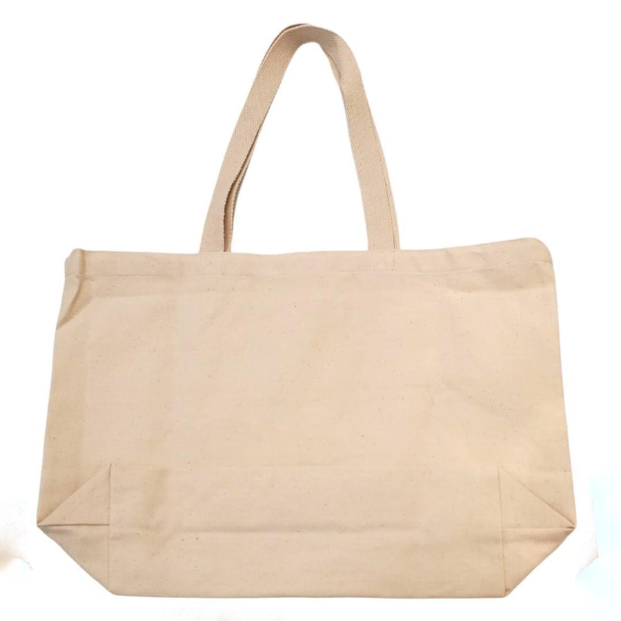 Colors: natural colored 12oz canvas bag printed in red, yellow, orange, grey, and black ink.