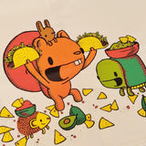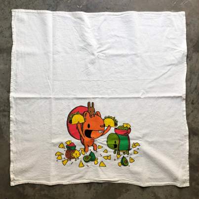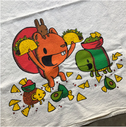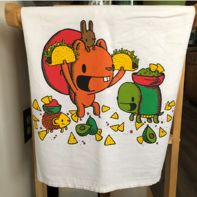 How cute are these little buddies getting their Taco Tuesday on? This super cute off-white 100% cotton flour sack tea towel is screenprinted with some cartoon critters enjoying a taco feast.