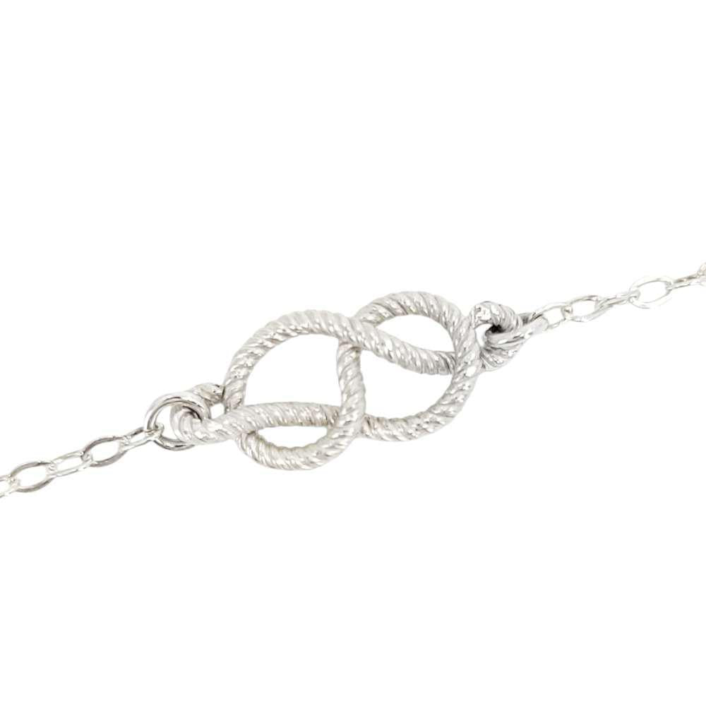 This nautical beauty features a figure 8 knot, hand-tied in twisted wire for a realistic rope effect, perched on a 7-inch sterling silver chain.