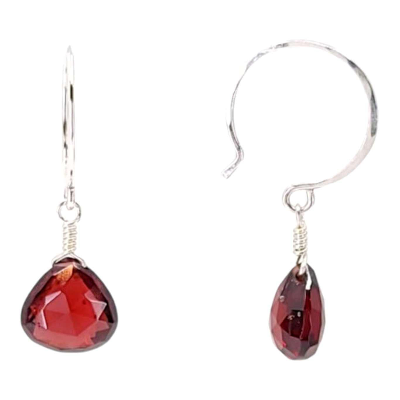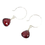 These sweet little earrings feature faceted teardrops of genuine garnet suspended on circular sterling silver ear wires.