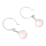 These sweet little earrings feature faceted teardrops of genuine pale pink rose quartz suspended on circular sterling silver ear wires.
