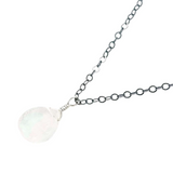 Necklace - Sterling Gemstone Drop (Rainbow Moonstone) by Foamy Wader