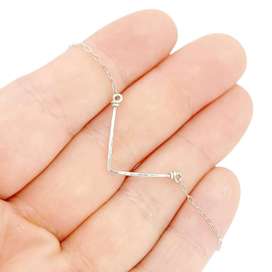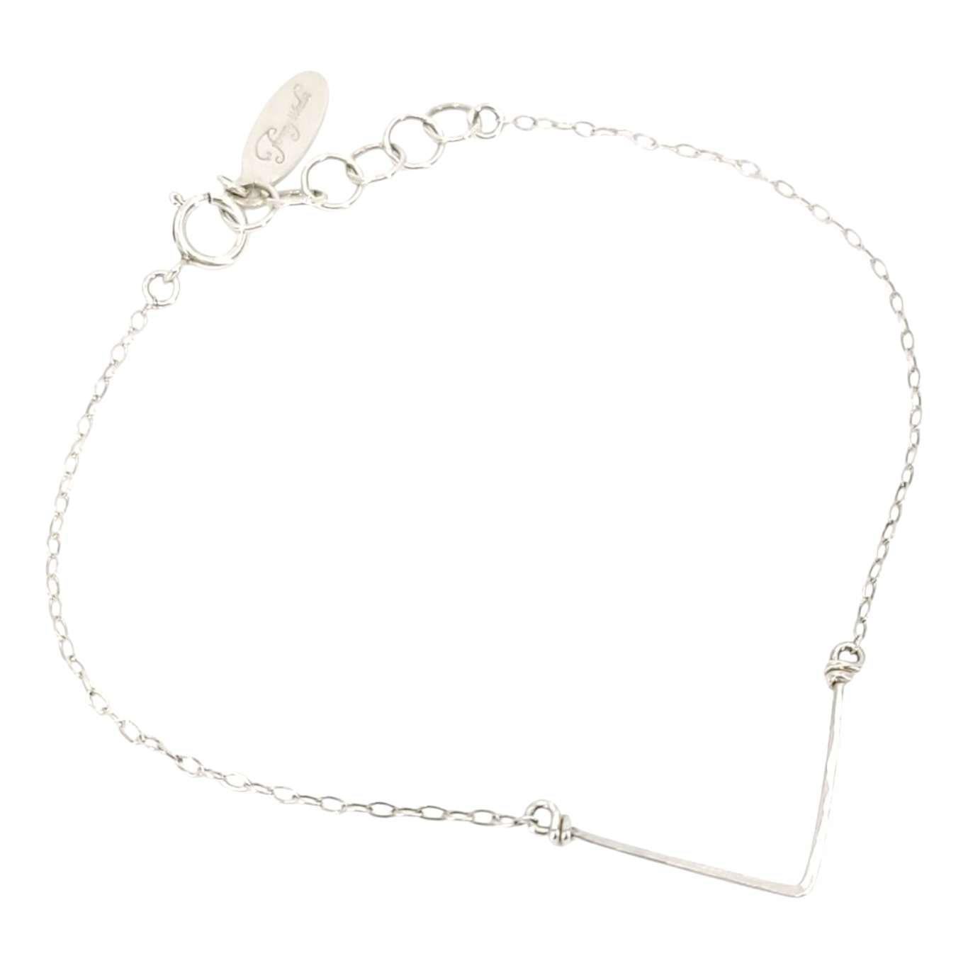 This delicate bracelet features a hand-textured chevron perched on a 7-inch sterling silver chain.