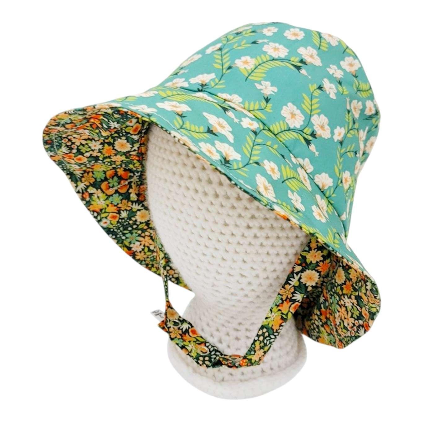 - Adorable baby bonnet in a bucket hat style