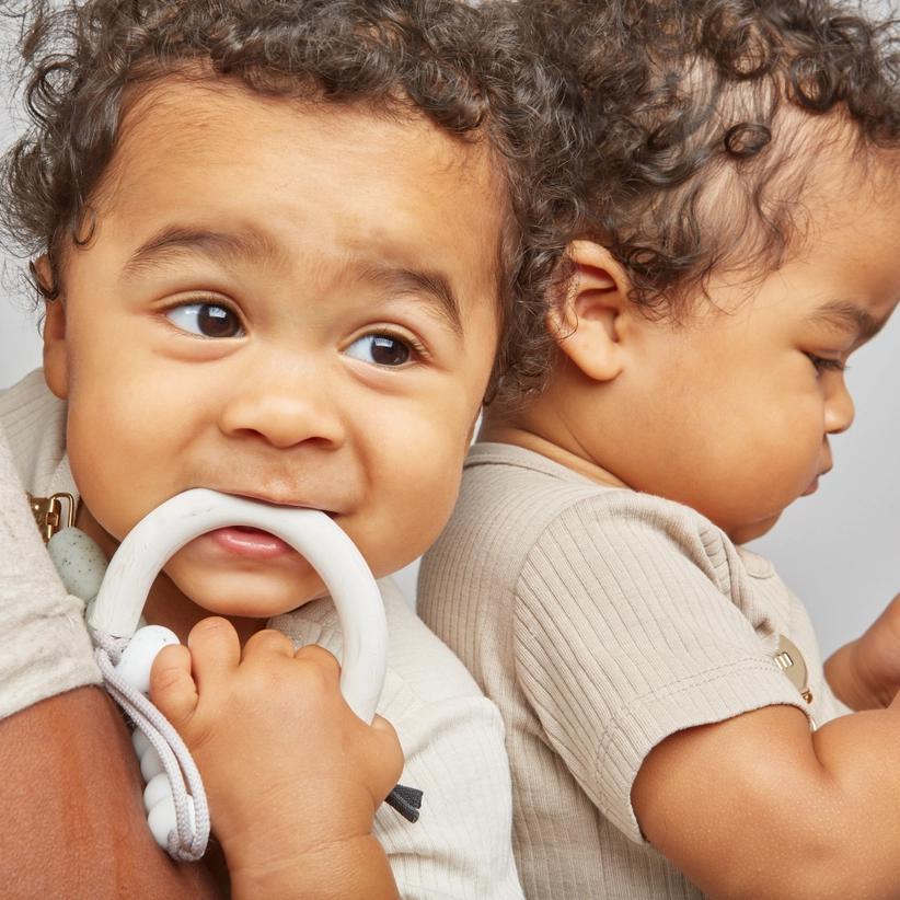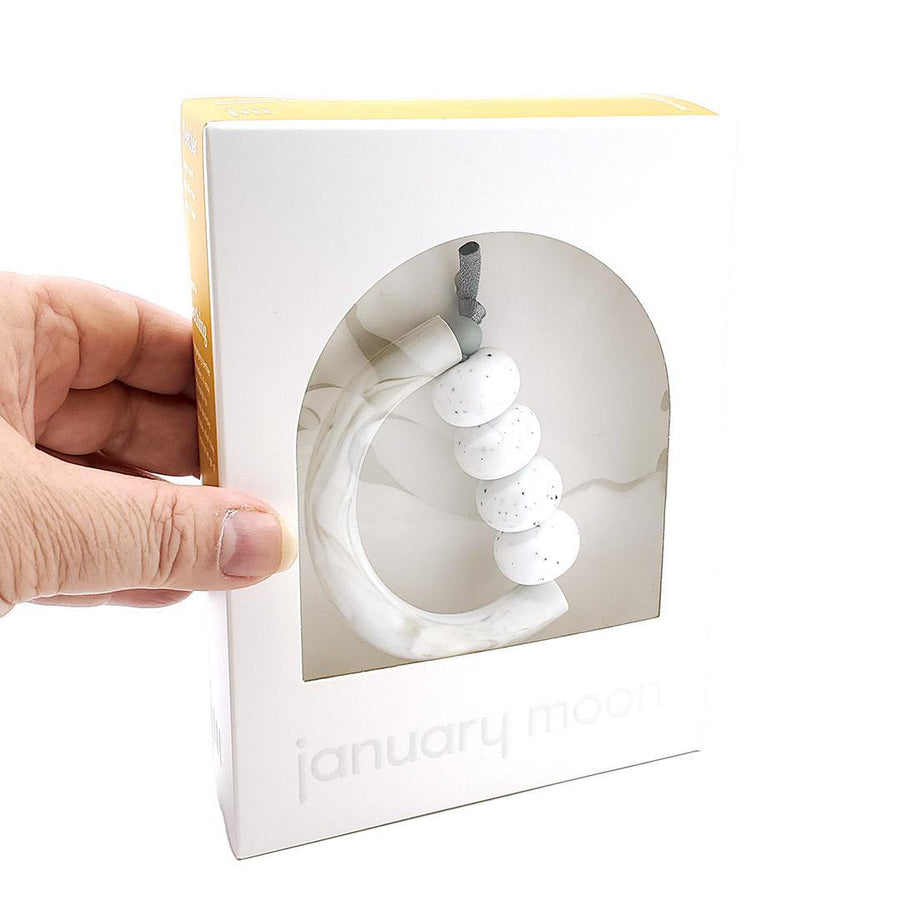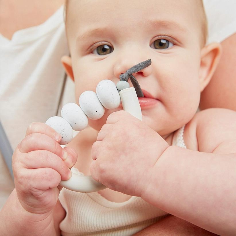 Say good riddance to sore gums with our Arch Teether in Moonlight. Featuring kid-friendly, non-toxic beads in bone white, pebble, and slate and an easy-to-grasp handle, Moonlight is the perfect partner to help your little one toddle through the teething years. Made with premium quality, non-toxic materials and lots of love in Nashville, TN.