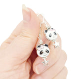 TAE264 $30 - Enamel Panda Star Drop Silver Plate Earrings