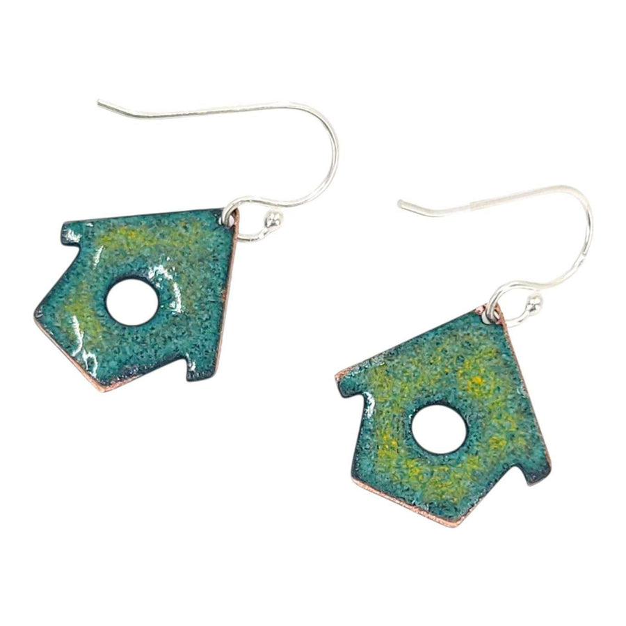 - Stunning house-shaped enameled copper earrings