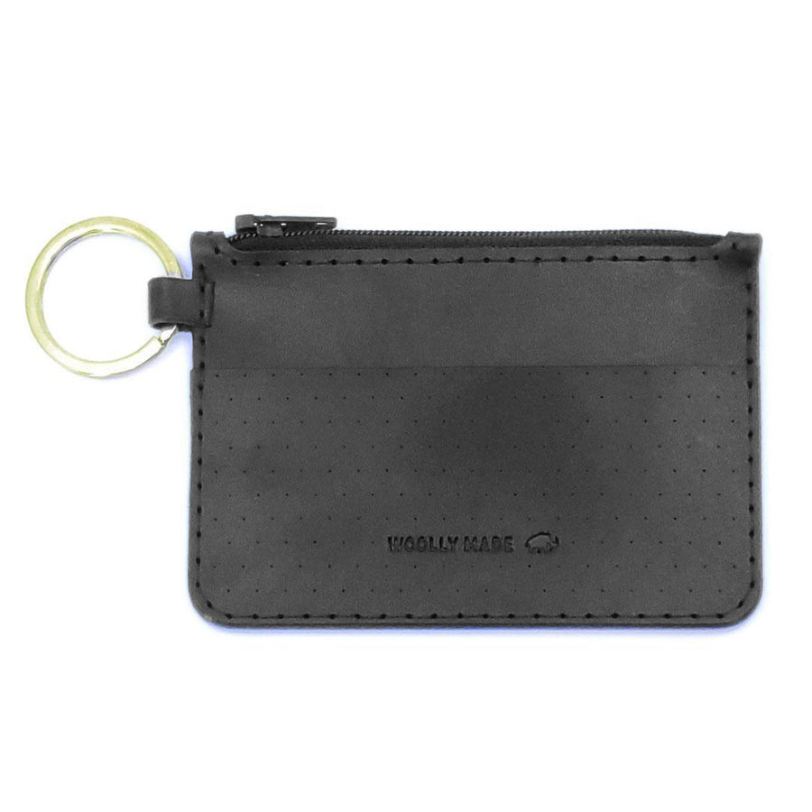 Wallet – Perforated Leather Coin Purse with Zipper (Black or Tan) by Woolly Made