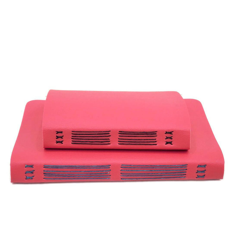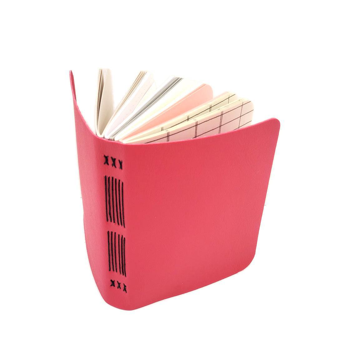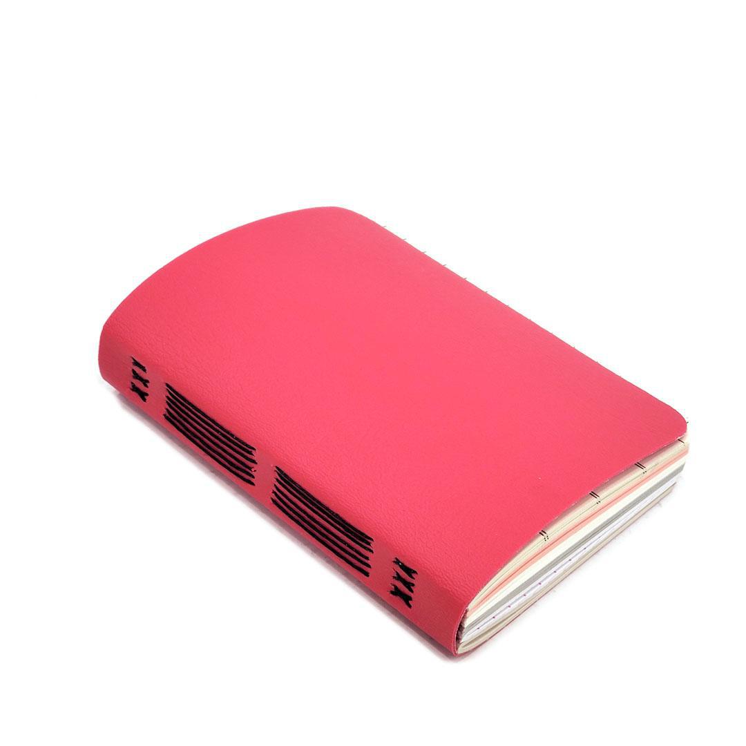 Each pink vegan leather mixed-paper journal is hand-bound, and one-of-a-kind.
