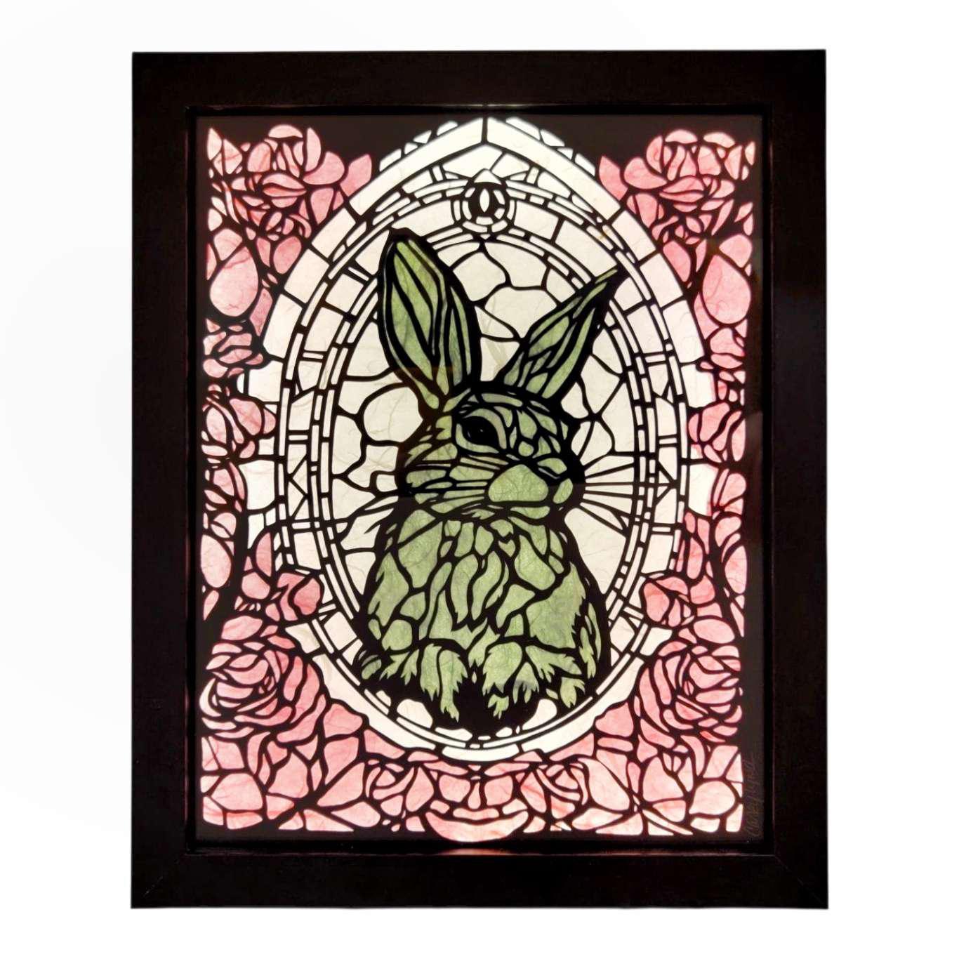 Lightbox - Hand Cut Paper Animal (Bunny Rabbit) by Squirrel Tacos Papercuts