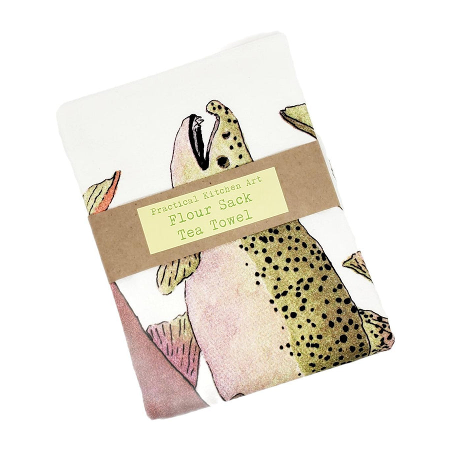 Original watercolor designs are screenprinted on 100% cotton flour sack cloth.
