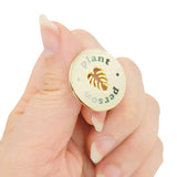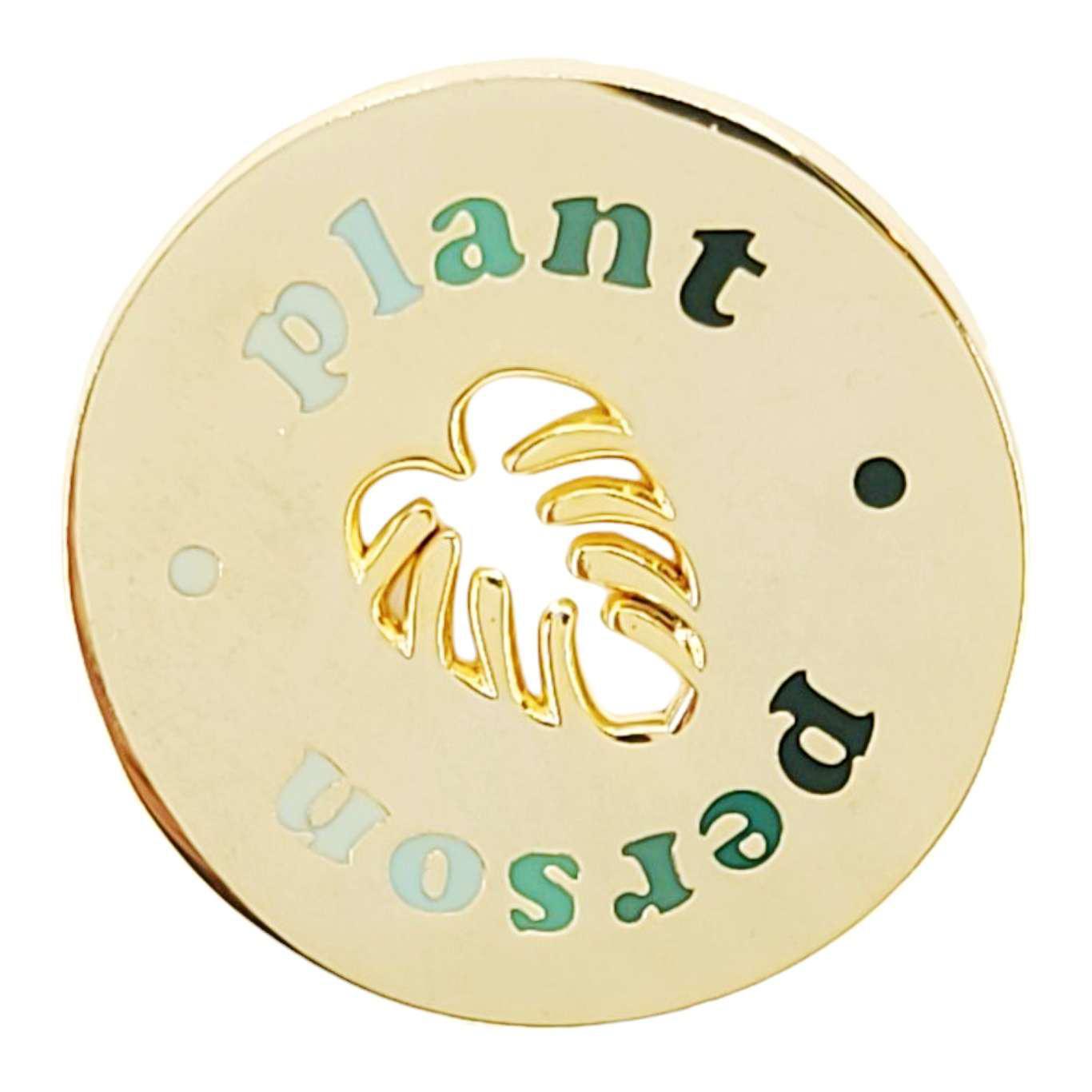 Show your plant love and pride with this bright gold badge featuring a monstera leaf cutout surrounded by the words 'Plant Person' (in green, naturally!)