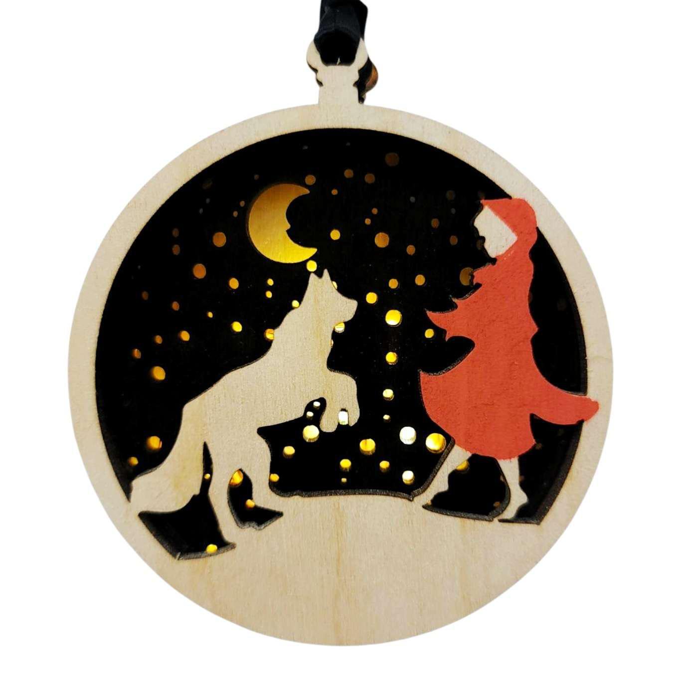 Ornament - Light Up Wood (Red Riding Hood) by Squirrel Tacos Papercuts