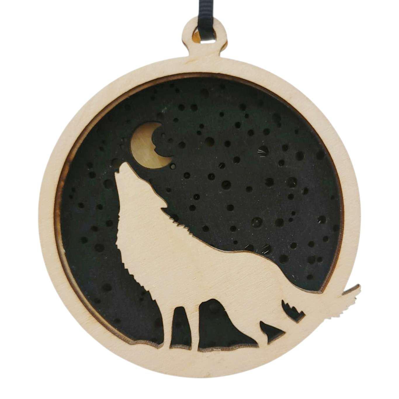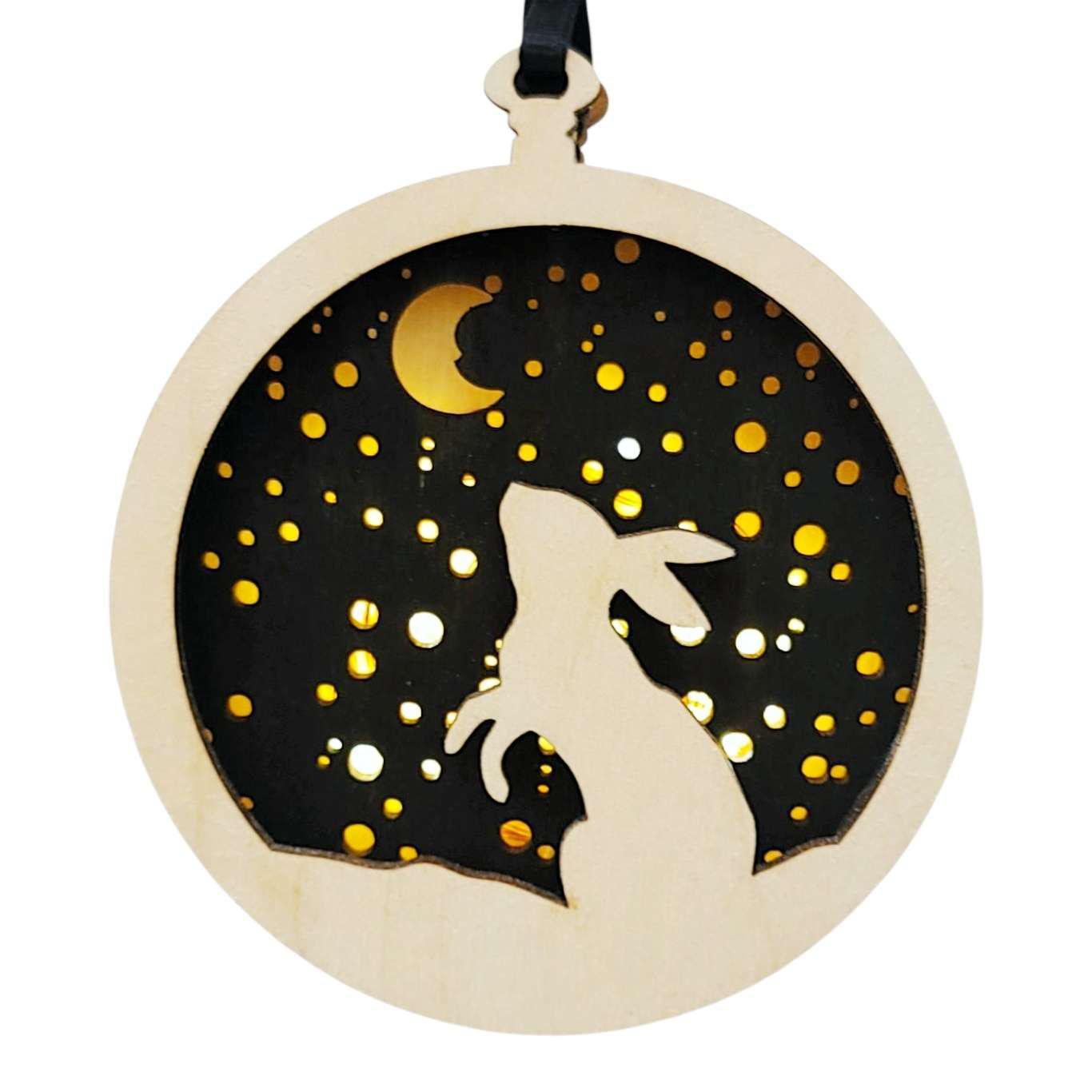 Ornament - Light Up Wood (Howling Wolf) by Squirrel Tacos Papercuts