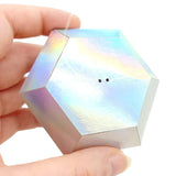 - Stunning combination of clean geometric construction and shimmering rainbow finish