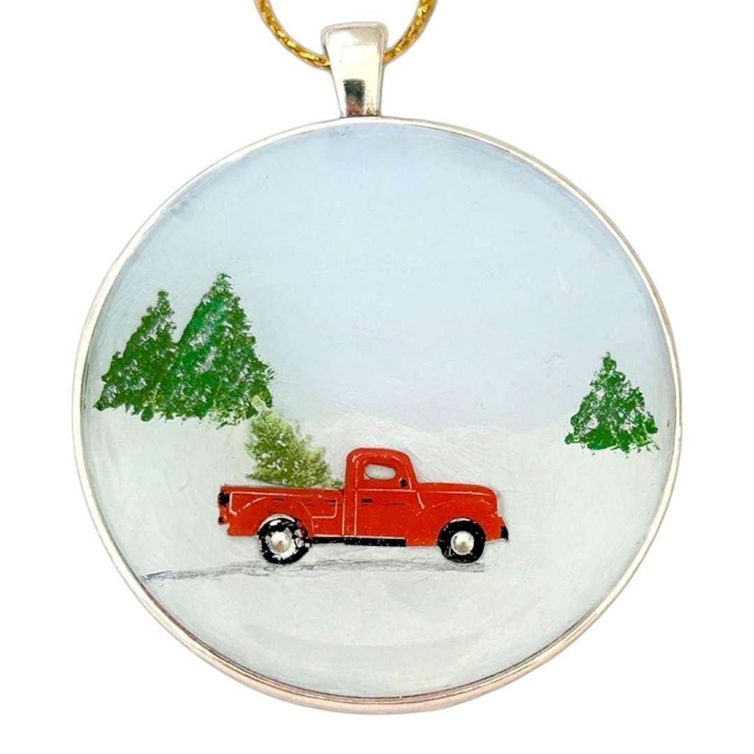 XVX207 $40 - Truck Snow - Round Resin Collage Ornament