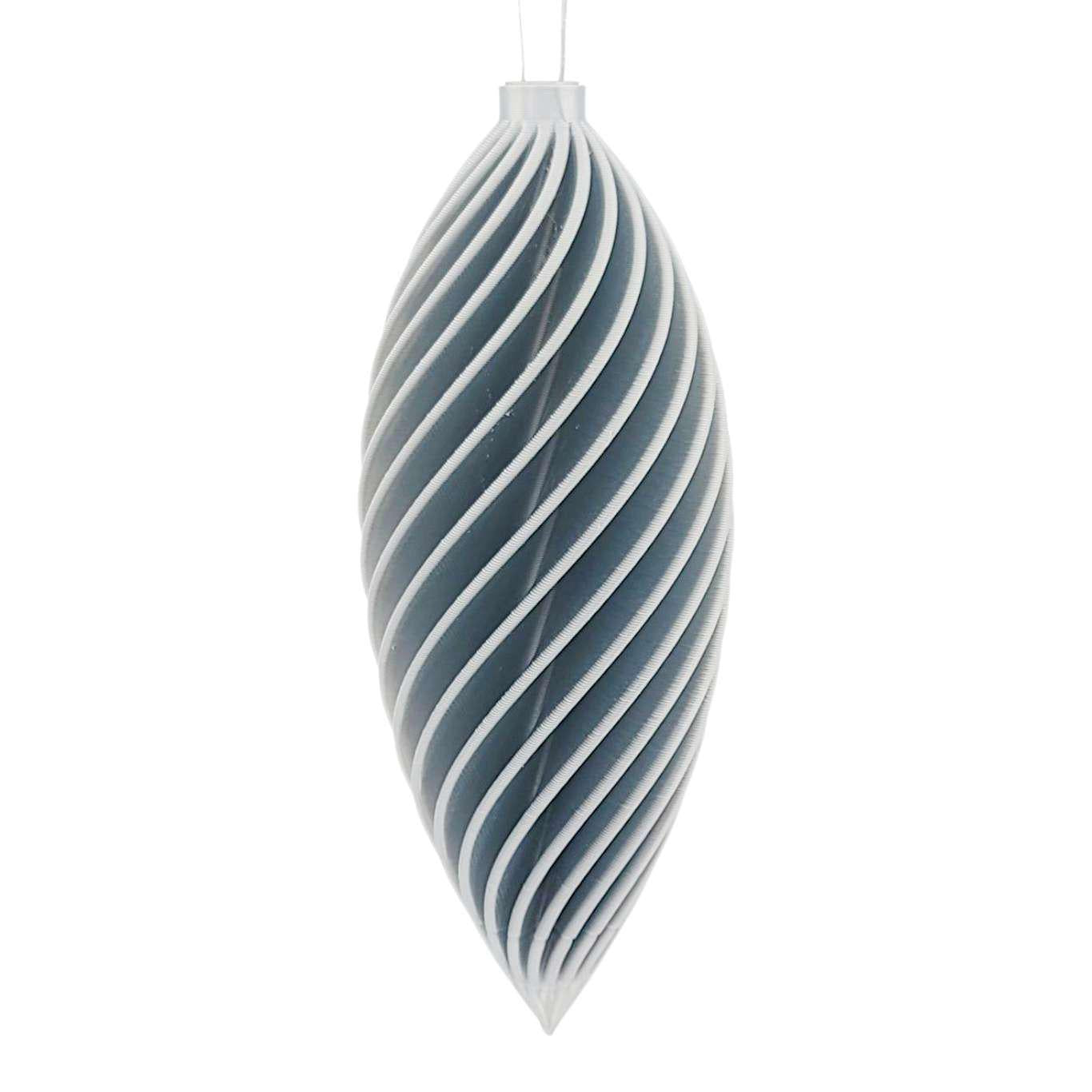 - Ornament A - Long Spiral: 5 1/4in H x 2in W x 2in D