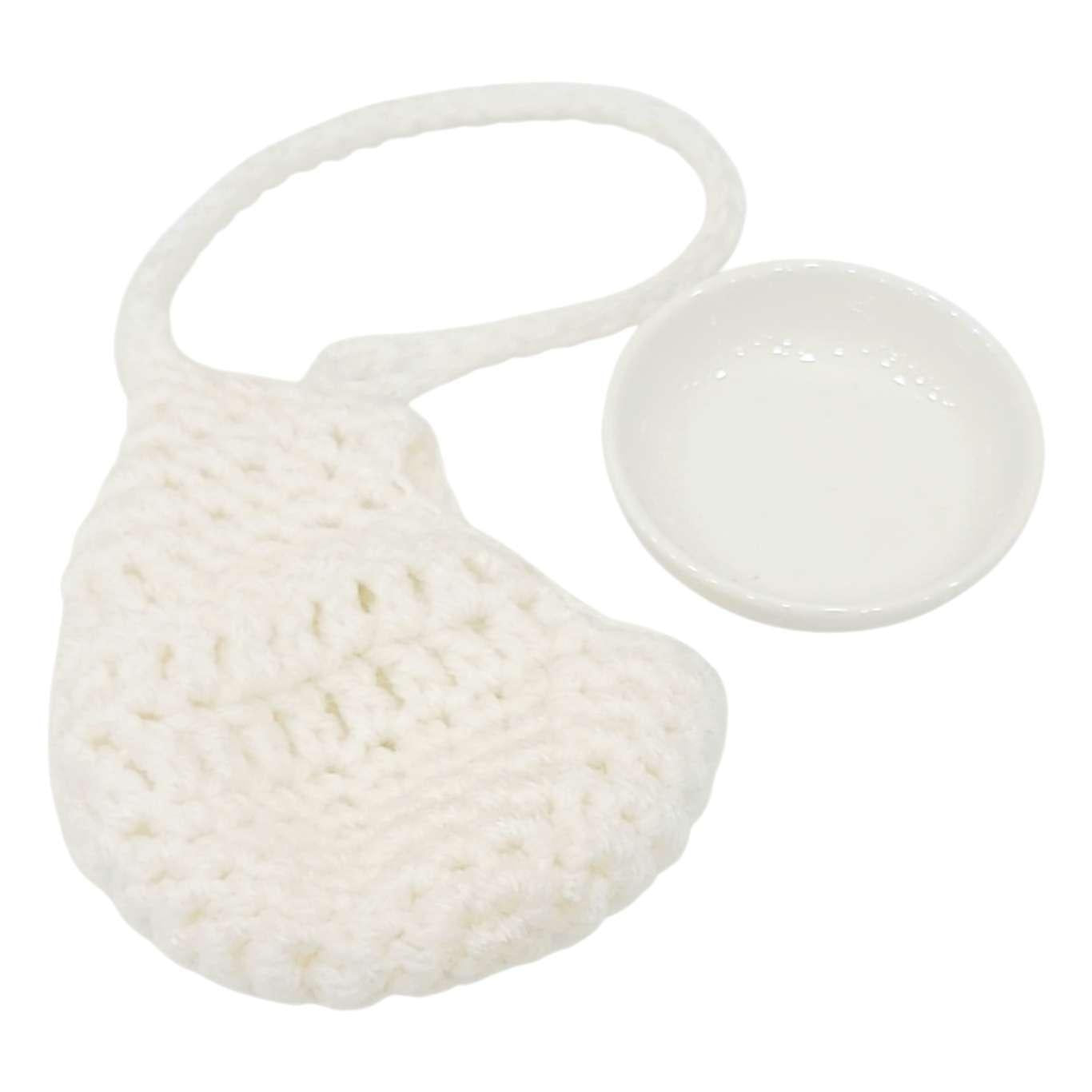 - Materials: Yarn, ceramic dish