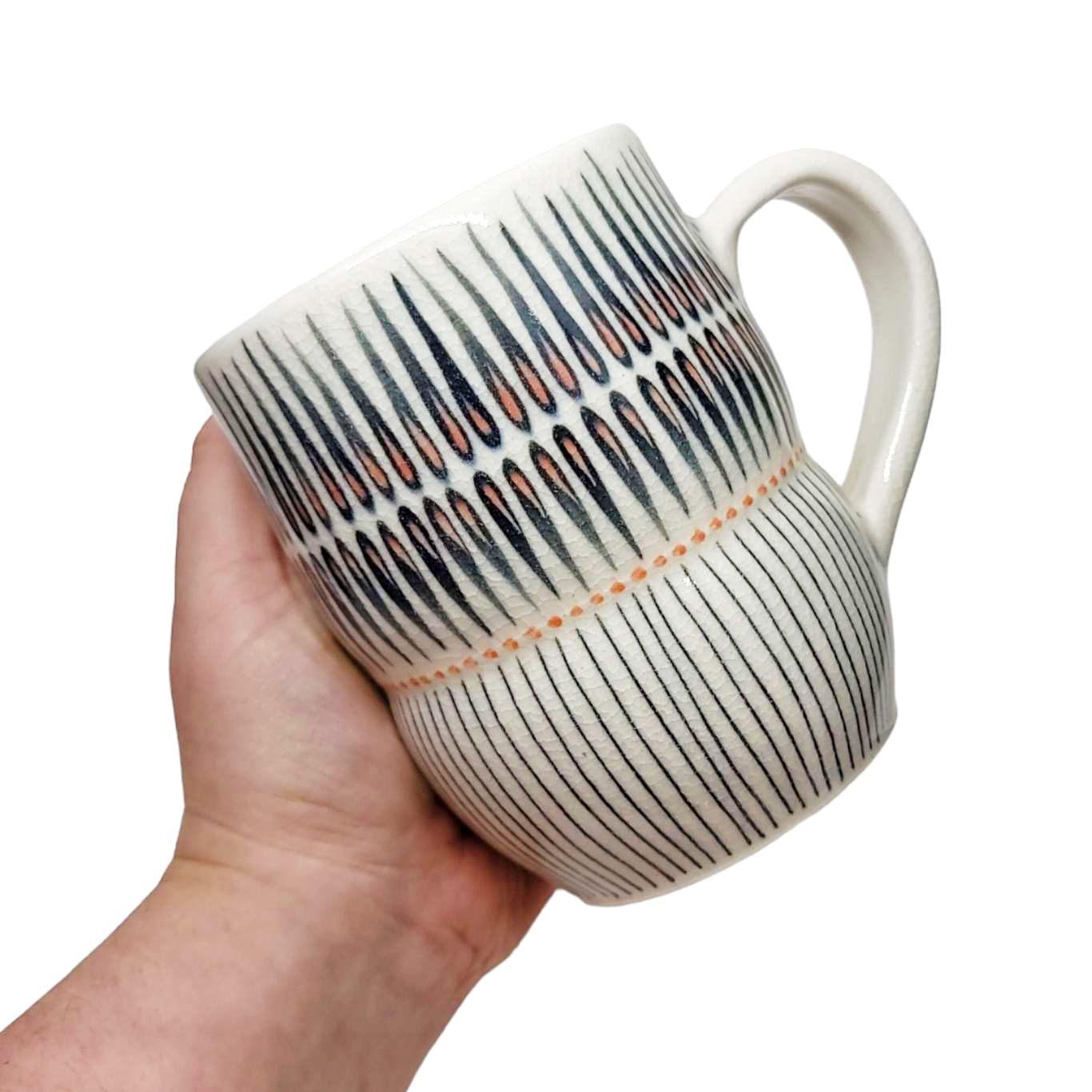 Mug - 16oz - Goldfinch Patterned Ceramic Mug by White Squirrel Clayworks