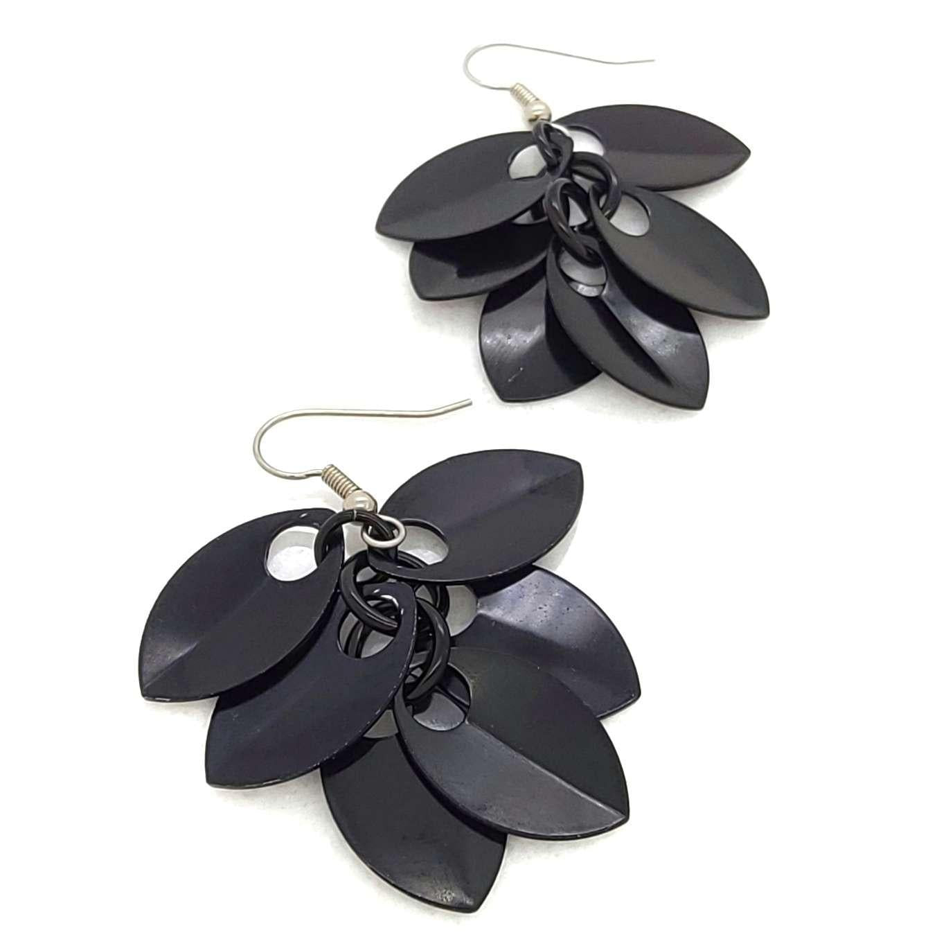 RMJ201 $38 - Black Short Leafy Cascade Earrings