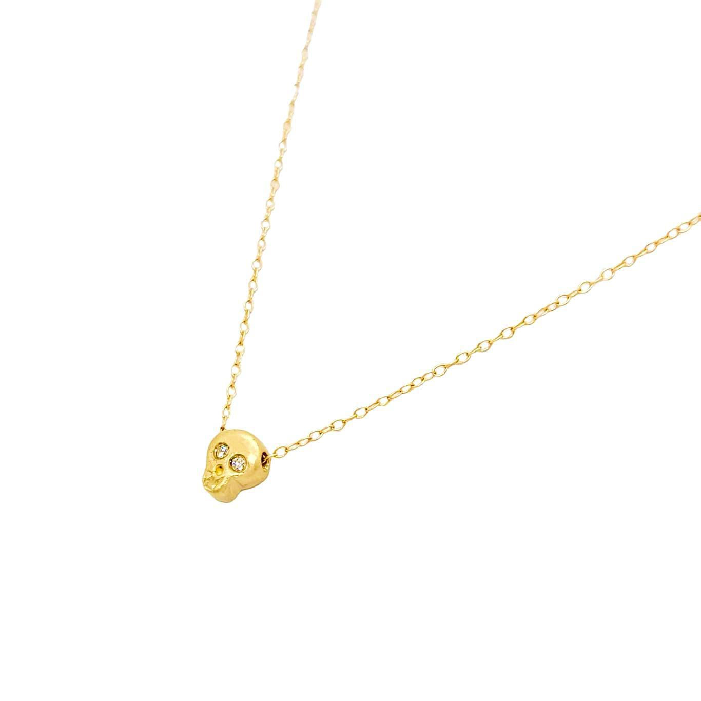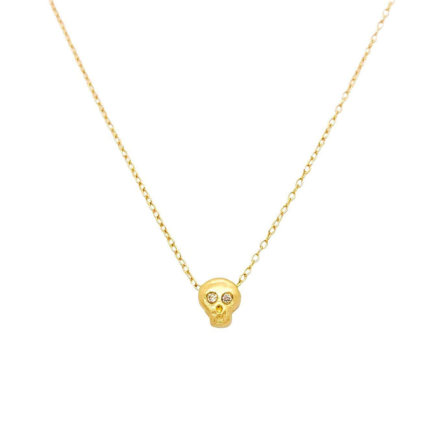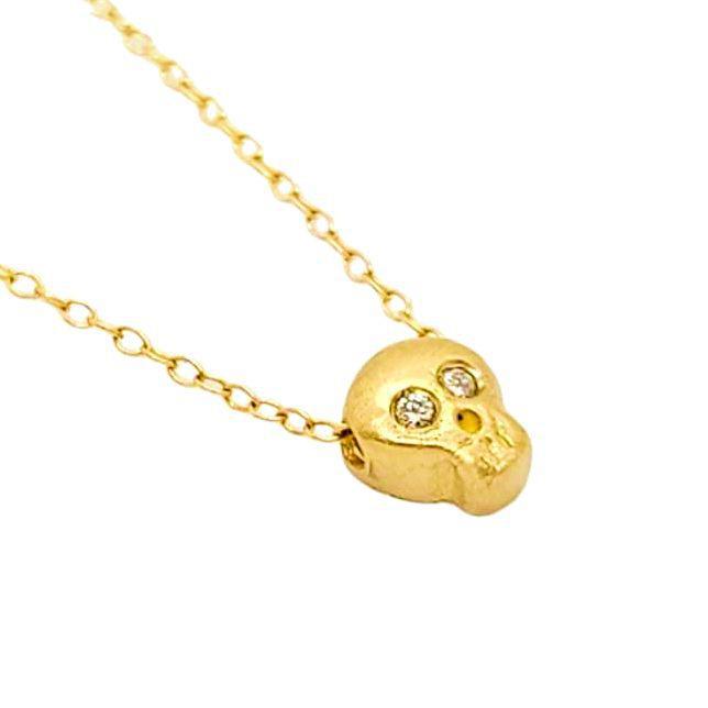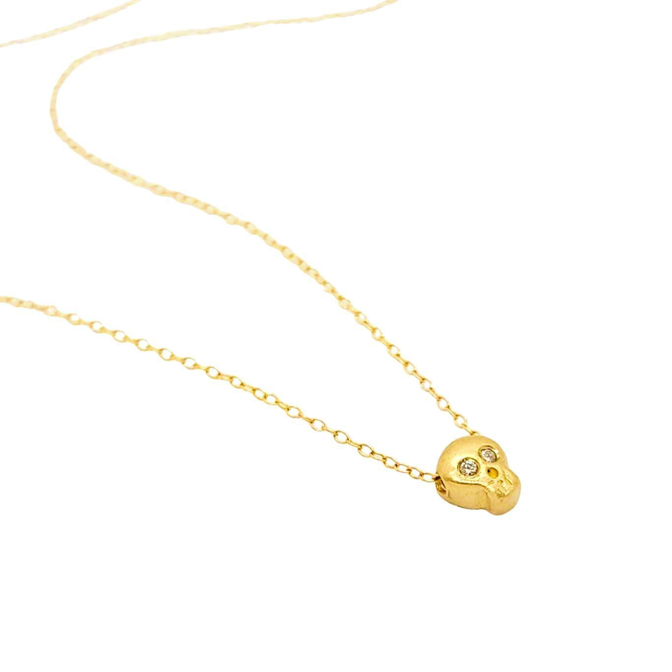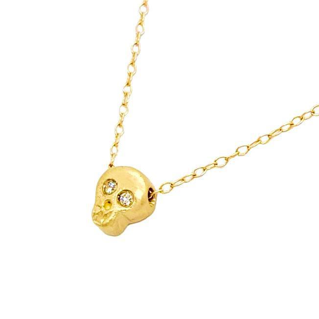 Necklace - Diamond-Eyed Tiny Skull in 14k Gold by Michelle Chang