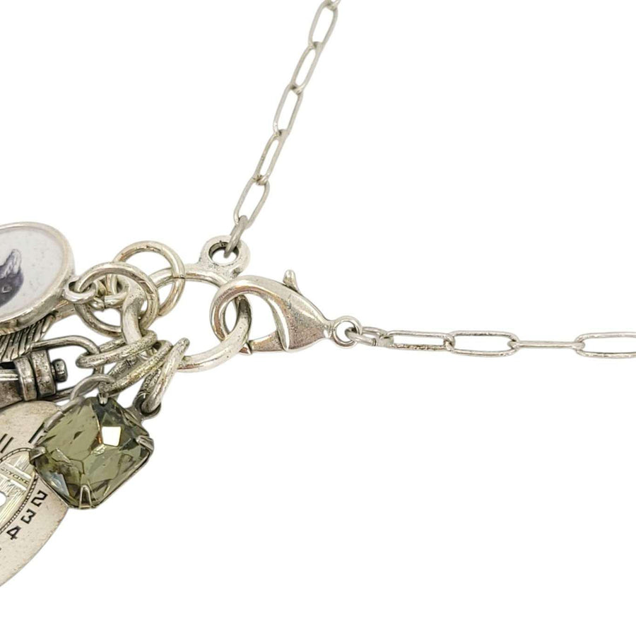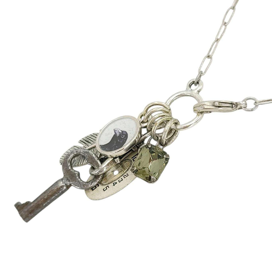 - Necklace featuring collection of charms and vintage pieces
