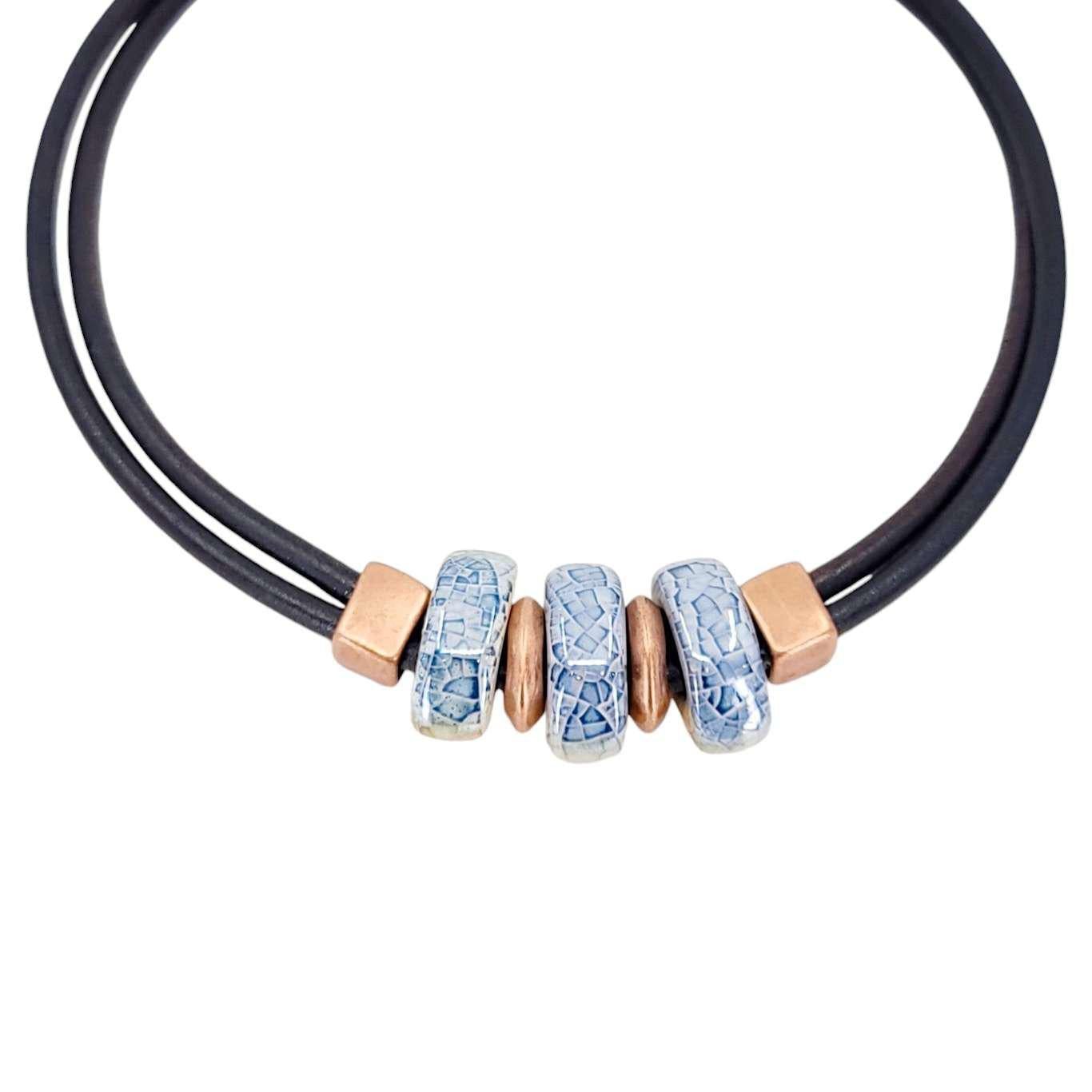 - Materials: Ceramic, glaze, leather, lead/nickel free metal (copper), magnetic clasp